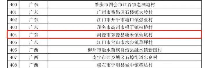 河源市东源县仙坑村入选第二批全国乡村旅游重点村名单