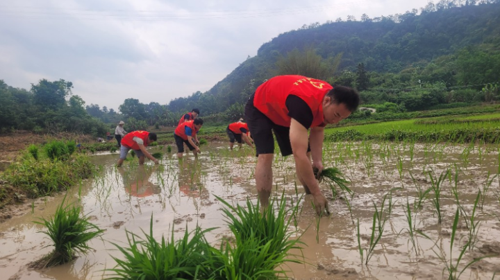 工作队成员与村干部共同帮村民插秧(资料图片)