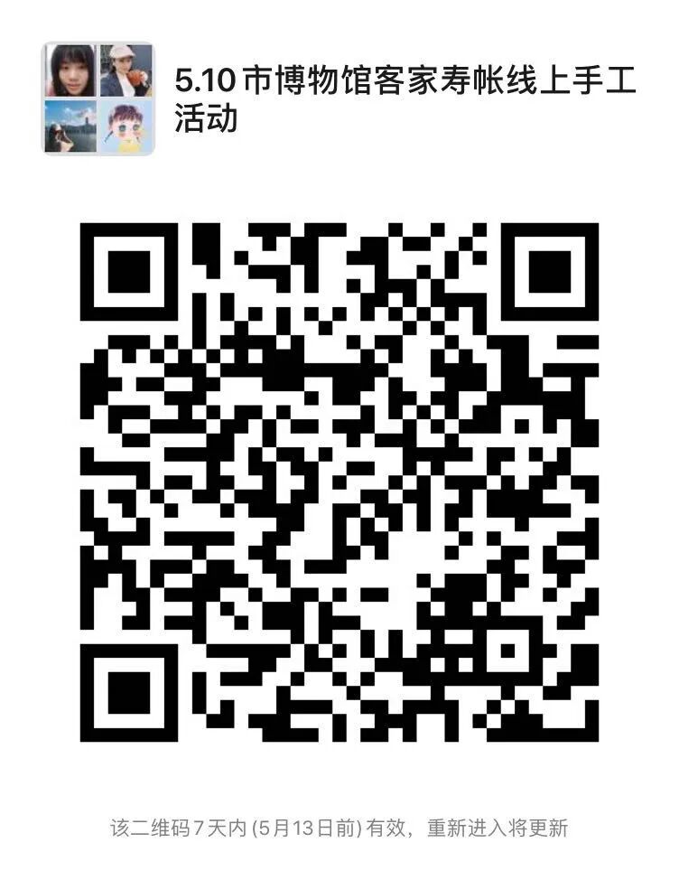 扫码关注“河源市博物馆”微信官方公众号—点击左下方栏目【展览服务】—【活动预约】—查看【“客家寿帐”母亲节主题手工线上教学活动】—【活动报名】—填写报名信息(报名成功后,请不要重复提交报名信息,如需取消报名,请拨打电话3618008告知工作人员)