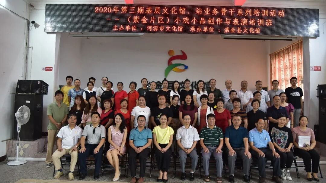 2020年是打赢脱贫攻坚战,全面建成小康社会决胜之年。为深入贯彻落实习近平新时代中国特色社会主义思想和党的十九大精神,积极培育和践行社会主义核心价值观,加强公共文化服务体系建设,促进全民艺术普及与提高,8月18日至20日,由河源市文化馆主办、紫金县文化馆承办的2020年第三期基层文化馆、站业务骨干系列培训活动(紫金片区)小戏小品创作与表演培训班在紫金县文化馆成功举办。全市文化馆、站业务干部和文艺骨干、业余剧团演员和小戏小品爱好者共60多人参加了培训。