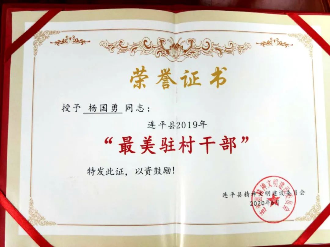 市文广旅体局杨国勇同志荣获2019年连平县“最美驻村干部”荣誉称号