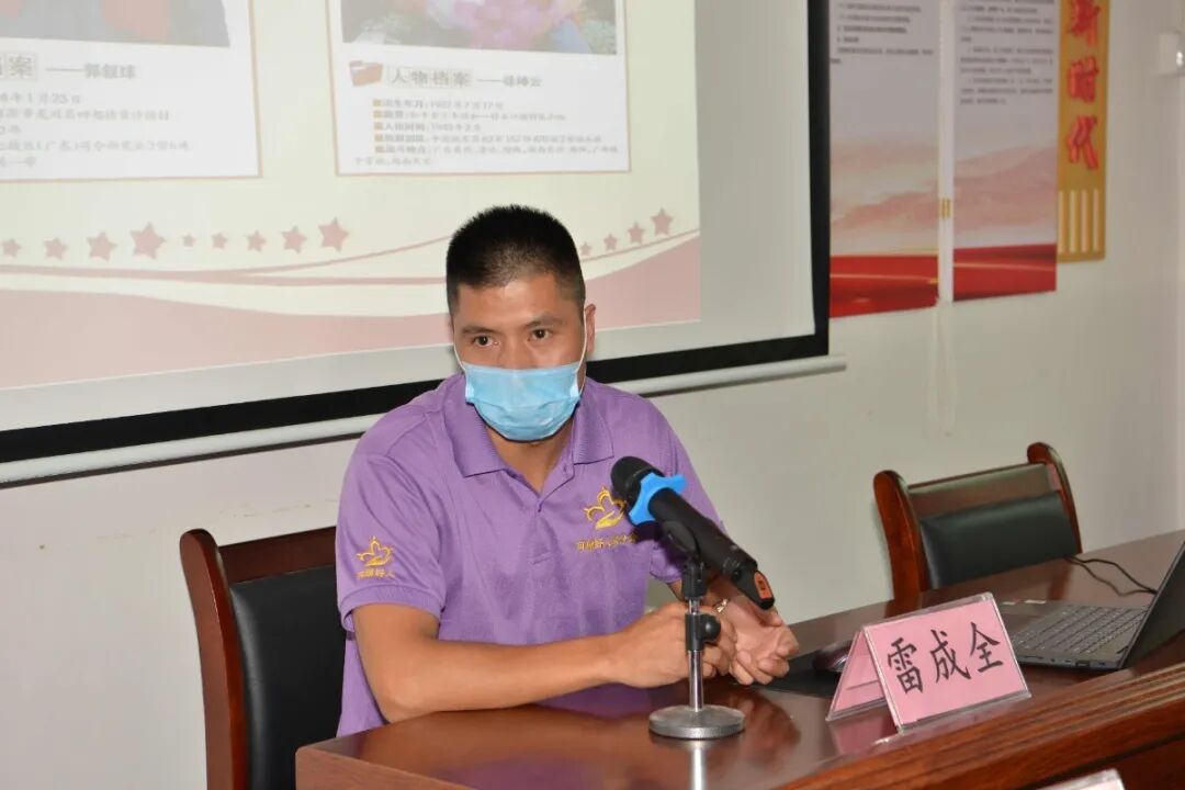 雷成全以“一个退伍军人的公益之路”为主题,分享了他脱下军装后仍心系人民、在实践中奉献自己,先后成立河源首个专业助学服务队和参与成立退役军人志愿者服务队,开展帮扶山区留守儿童、慰问老兵、疫情防控等公益服务等先进事迹。