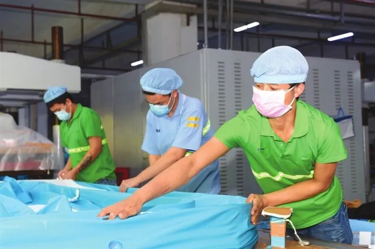 △在深圳盐田(东源)产业转移共建园,力升树灯(河源)有限公司生产车间的工人正有条不紊地作业